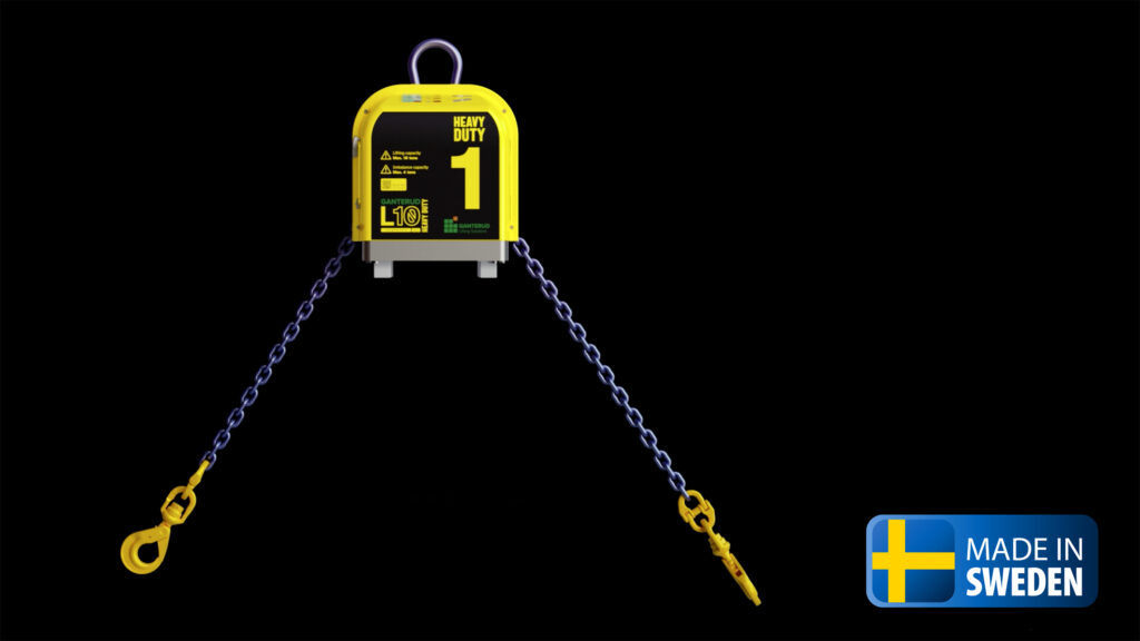 Vårt kraftfullaste nivelleringsok. Extrem nivelleringskraft i smidigt format! Lyfter tyngre laster från horisontellt till vertikalt läge. Perfekt för exempelvis tung industri. Effektivt nivellerande lyftok med lastkapacitet upp till 10 ton (beroende på lyftkapacitet). Ganteruds nivellerande lyftok L10 Heavy Duty är lämpad för både lätta och tunga objekt. Radiostyrt och du kan med två hastigheter enkelt och säkert nivellera dina objekt och dyrbar krantid och väntetider minskas. Dessutom kan du med radiokontrollen frikoppla kedjehjulet för att använda L10 Heavy Duty som ett kastblock. Lyftoket har ett internt batteri och kräver därmed inga externa energikällor, vilket förenklar sammankoppling med lyftanordningar. Modellen är enkel att serva och underhålla då du endast behöver ladda batteriet.